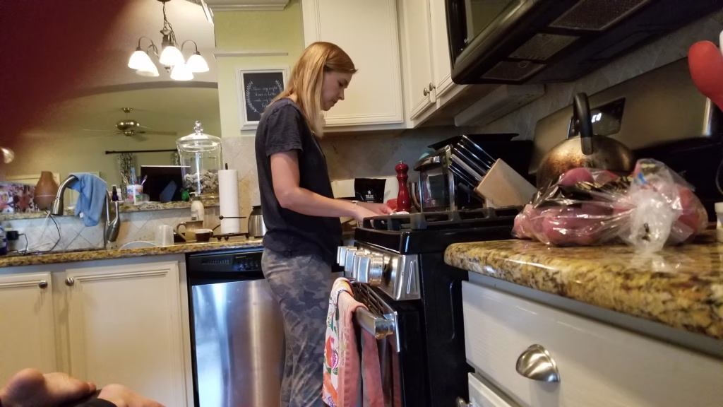 You can see me here years and years ago – one of my kids caught me prepping food (or a recipe!).